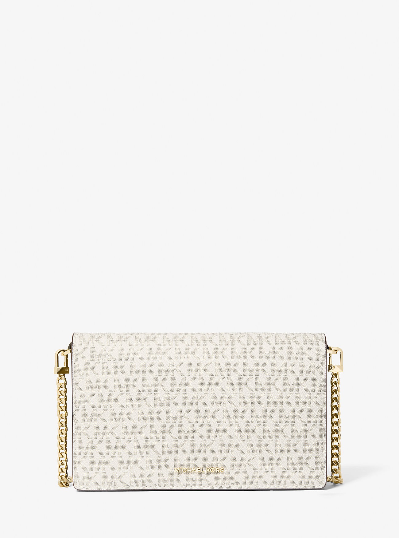 Confeccionada em lona com estampa do logo Signature e finalizada com uma alça de corrente brilhante, a bolsa transversal Jet Set é a companheira de viagem ideal. Seu formato compacto tem o tamanho perfeito para carregar seus itens essenciais do dia a dia e conta com um compartimento interno com zíper e diversos espaços para cartões, mantendo tudo organizado. Remova a alça para usá-la como uma elegante carteira de mão.