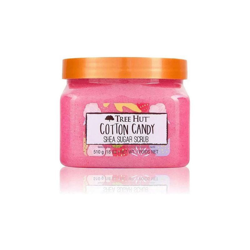 Esfoliante corporal Shea Sugar Scrub Cotton Candy Tree Hut, experimente uma esfoliação intensa e revele uma pele macia e brilhante com o aroma divertido de Cotton Candy! Fragrância: Algodão doce e morango. Feito com açúcar, manteiga de karité, morango e uma variedade de óleos naturais como óleo de prímula, abacate, macadâmia, amêndoa doce, cártamo e óleo de laranja.